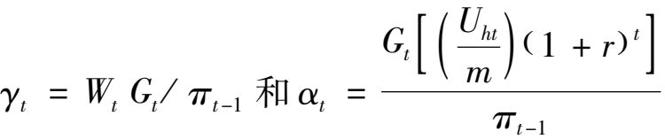 其中TWt为工作时间,TLt是健康不足导致的时间损失。Tt为生产商品的时间。Tht为健康投资时间。解得上述模型的均衡条件为:
