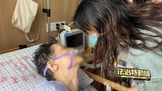 周女士的母亲何阿婆现年76岁,如今住在康复医院中。记者看到她时正虚弱地歪在病床上,脸上带着呼吸器,身上插着输液管和监护用的电线。