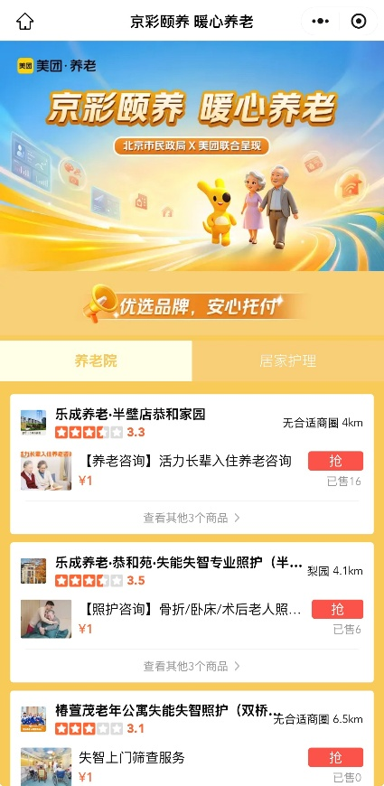 目前,针对入驻的在民政部门备案的养老服务商家,美团还推出了系列配套扶持举措。据悉,平台将为参与合作的商家提供线上线下流量资源扶持、成本直降优惠、平台补贴以及服务保障响应机制等政策。同时,平台也将持续联动更多城市开展政企合作,打造养老产业的品牌影响力。