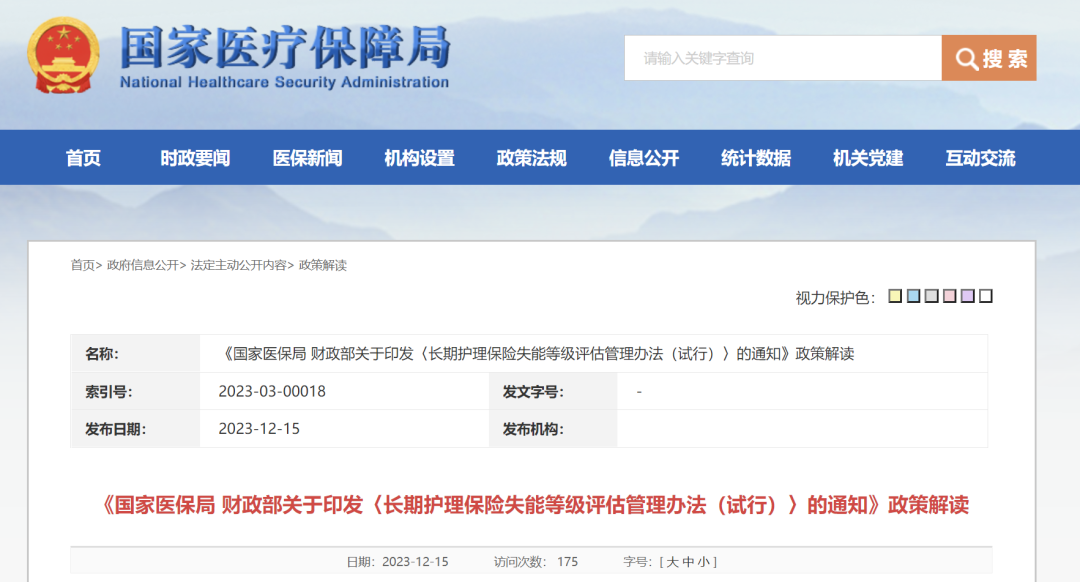 为规范长期护理保险制度试点,加强长期护理保险失能等级评估管理,更好保障参保人合法权益,近日,国家医保局会同财政部印发了《长期护理保险失能等级评估管理办法(试行)》(医保发〔2023〕29号,以下简称《管理办法》)。